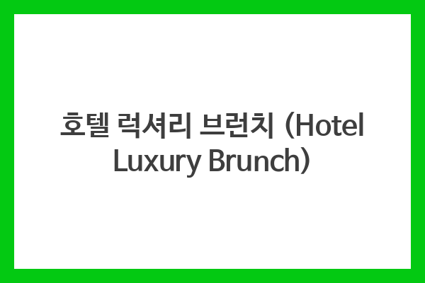 호텔 럭셔리 브런치 (Hotel Luxury Brunch)
